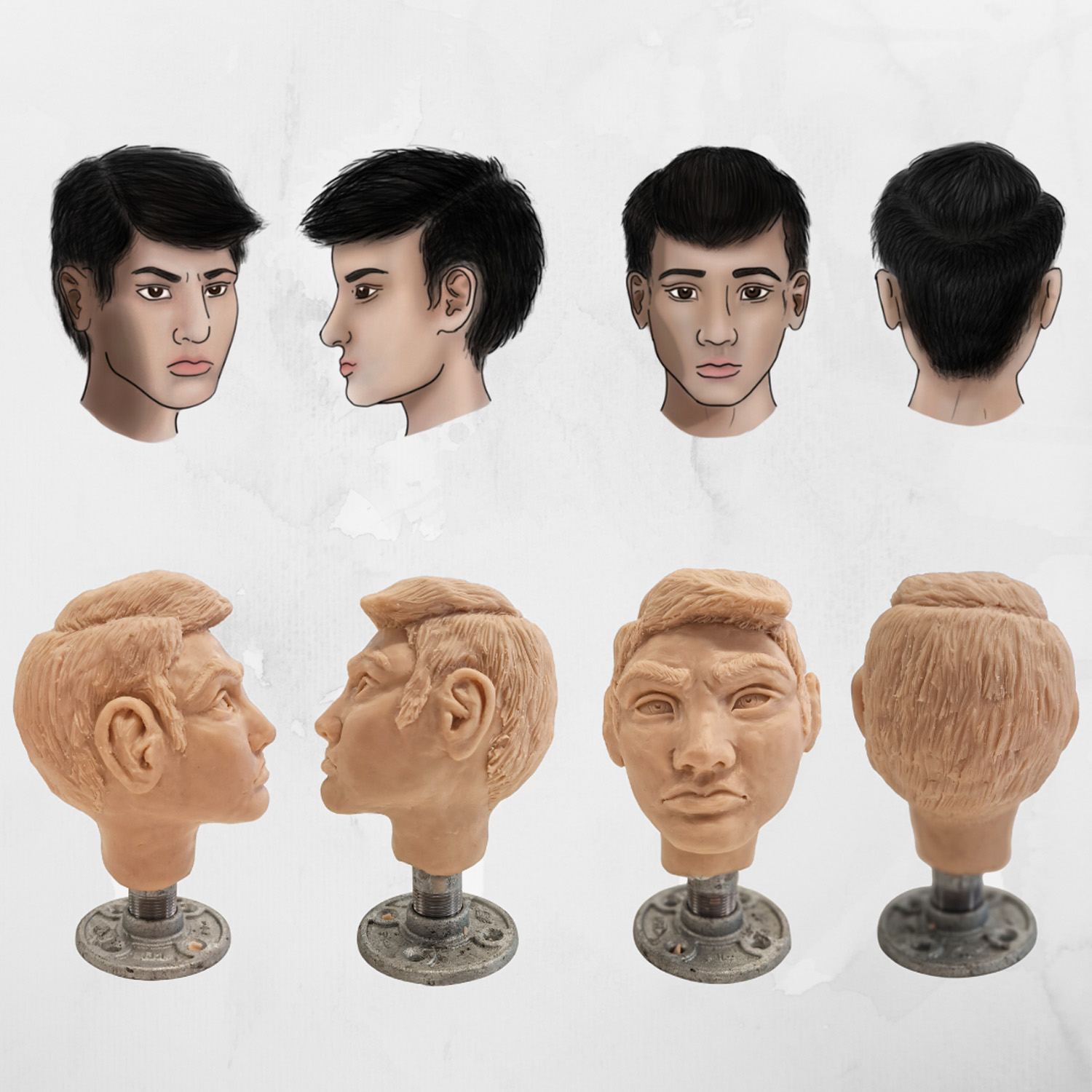 • Enfin, durant la dernière séance, chaque étudiant·e a travaillé sur les cheveux, les sourcils et potentielles barbes des personnages, ainsi que sur les dernières touches finales !