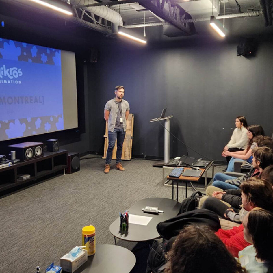 Quelques temps après cette première visite, nous avons eu le plaisir d’accueillir Milica Vesic, Crew Manager ainsi que Suchita Suryamurty et Sabrina Pacifico, de l’équipe d’acquisition de talents de Mikros Animation, cette fois-ci dans nos propres locaux, pour une conférence ouverte à tout·e·s les étudiant·e·s de l’ESMA Montréal !